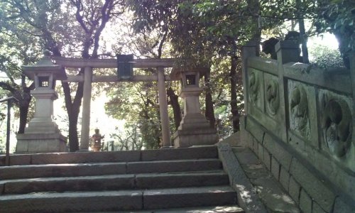 浴衣姿の人がいっぱいです。参道の部分には出店がたくさん^^